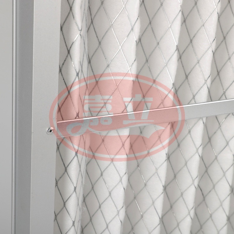 初效过滤器(折叠式)外框采用硬纸框或铝型材,将无纺布化学纤维布,折叠成形加以金属网支撑。